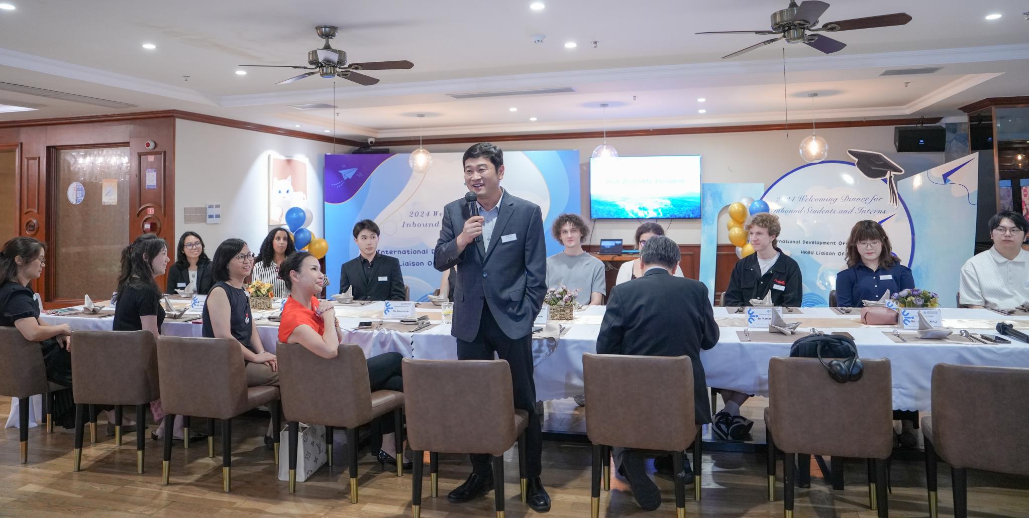 Prof Chen Zhi addresses the students and interns at the beginning of the dinner